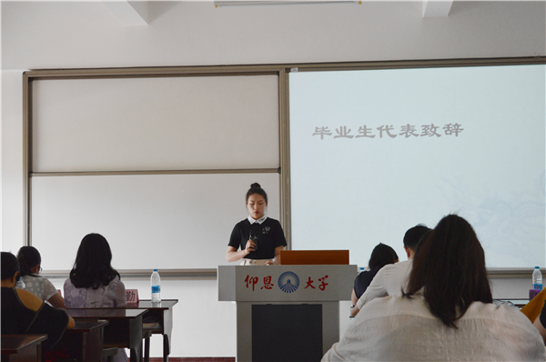 最后,由毕业生代表陈瑶、许晓鸣就自身在校经历及实习情况进行发言。期间陈瑶表示,感恩学校四年来的栽培、感谢hth华体育官网全体老师的谆谆教导和关怀。
