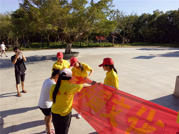 hth华体育官网赴永宁古镇暑假实践队开展问卷调查及横幅签名活动