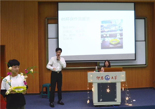 本次活动通过展示班级环保PPT、分享环保创意作品、环保知识竞答等环节展开。参赛班级以独特的形式为大家展示保护环境的必要性,并提倡大家积极参与环保行动,善用许多生活中的废弃之物变废为宝,呼吁同学们随手关灯、节约用水、对垃圾进行分类,从身边小事做起。期间,同学们还观看了公益环保视频,进一步让同学们了解保护环境的紧迫性与责任感。