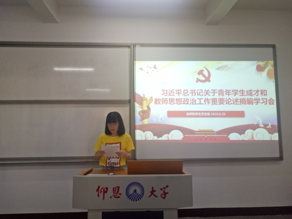 会上,林媛以党的十九大报告中“青年兴则国家兴,青年强则国家强”直接切入主题,指出作为新时代的青年,面对“两个百年”奋斗目标的宏伟蓝图,应当主动响应冲锋的号角,扛起时代的大旗,不负使命、锤炼本领、勇于担当。期间,支部党员结合自身工作学习情况进行发言交流,其中廖雅琪同志表示:“青年时代是学习的黄金时期,应该把学习作为首要任务,作为一种政治责任、一种精神追求、一种生活方式。”