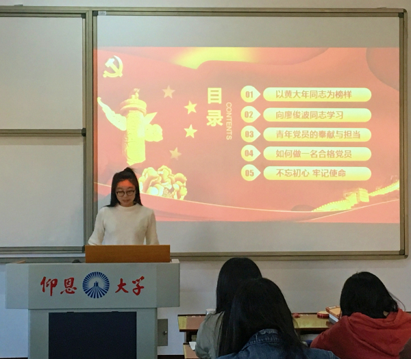 此专题活动主要以“知先进事迹,学党员责任”为主题,充分发挥党员的先锋模范作用。会上,陈惠琼、黄宏等同志分别从“不忘初心,学先进事迹”和“党员责任”等方面入手,讲述了作为大学生党员应心怀责任,勇于担当,发挥光产党员的纯洁性和先进性,自觉增强政治意识,大局意识,核心意识,看齐意识,争做讲政治、有信念,讲规矩、有纪律,讲道理、有品行,讲奉献、有作为的合格党员。