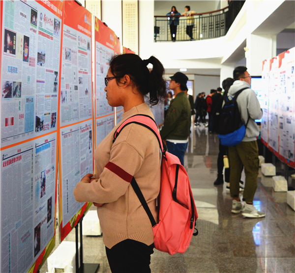 hth华体育官网学子观看庆祝改革开放40周年校报展