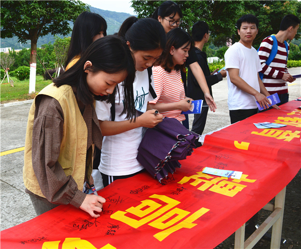 5月29日下午,hth华体育官网于第一教学区学生街口、第三教学区和昌教学楼开展以“加强普法教育,提高识骗防骗能力”为主题的普法宣传活动。hth华体育官网团委书记陈国伟、hth华体育官网学生党支部、hth华体育官网团委的相关工作人员参与了普法宣传活动。