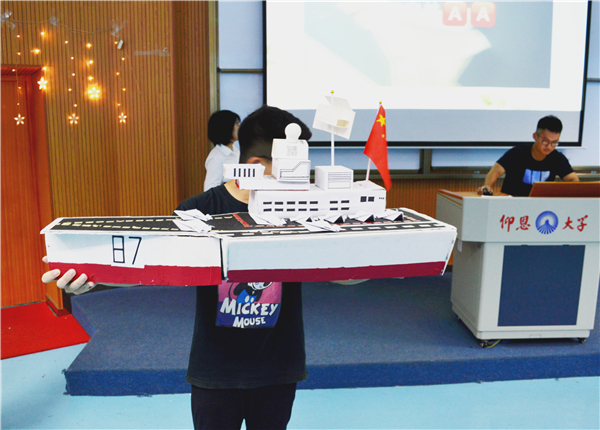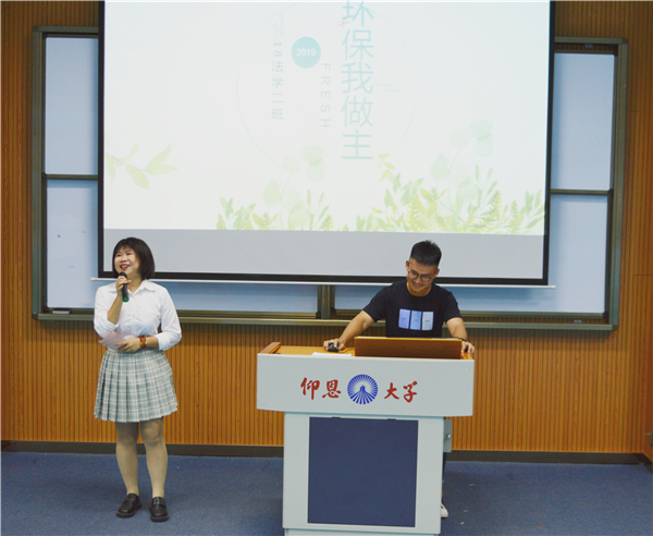 本次比赛分为班级环保PPT展示、环保创意作品分享、环保知识竞答等环节。各参赛班级以PPT宣讲方式,向在场师生宣传节约用水、垃圾分类、废物回收利用等环保理念,并呼吁同学们从自己做起,从小事做起,积极投入到保护生态环境的实践中去。期间,各班以新颖独特的方式,用生活中的废弃物与闲置用品,向大家展示了如何“变废为宝”。其中,2018级法学2班仅用生活中废弃的纸盒制作成军舰模型,外观精美,造型独特,赢得场下一片好评。