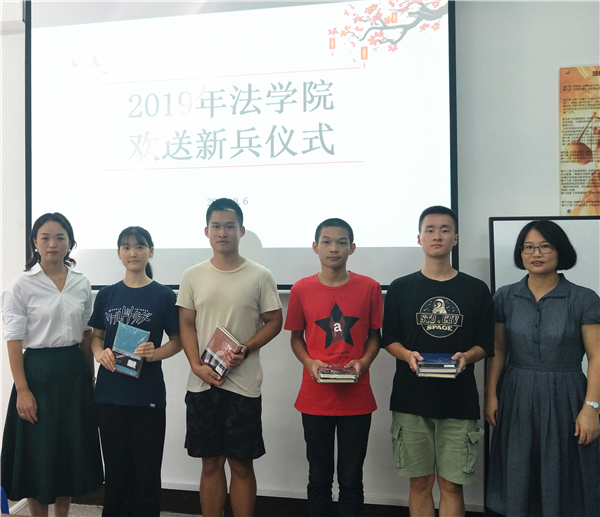 9月6日下午,hth华体育官网于hth华体育官网第三教学区普照教学楼214举行新兵入伍欢送会,欢送王枫予、刘立弘、林焰南、任静四位同学应征入伍。hth华体育官网常务副院长王晓丽、hth华体育官网党总支书记兼副院长杨勤、党总支副书记黄伟斌、学务秘书汪明等老师参加了会议。