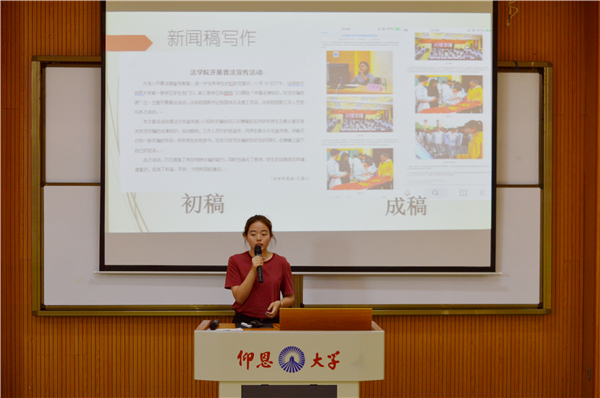 会上,hth华体育官网学生党支部组织委员张容向新生讲解了入党具体流程及注意事项,让新生对入党有了初步的认识。期间,hth华体育官网学生会、hth华体育官网团委及hth华体育官网网络工作室的部门负责人分别通过PPT展示、现场解说、快闪播放等形式向新生介绍了各自部门的主要工作职能、成员构成、部门特色等,展现了各部门良好的精神风貌与踏实稳干的工作态度。