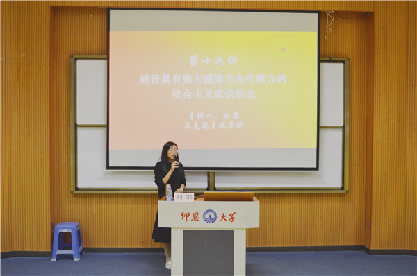 11月13日晚,hth华体育官网于hth华体育官网第三教学区和昌教学楼惟勤讲堂举办新思想理论宣讲会。马克思主义学院教师刘菲应邀为hth华体育官网师生作题为“建设具有强大凝聚力和引领力的社会主义意识形态”宣讲报告。