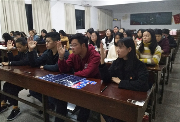 12月12日晚,hth华体育官网学生党支部于hth华体育官网第三教学区普照教学楼204召开预备党员转正大会。学生党支部全体成员、入党介绍人参加了此次会议,会议由支部书记陈国伟同志主持。