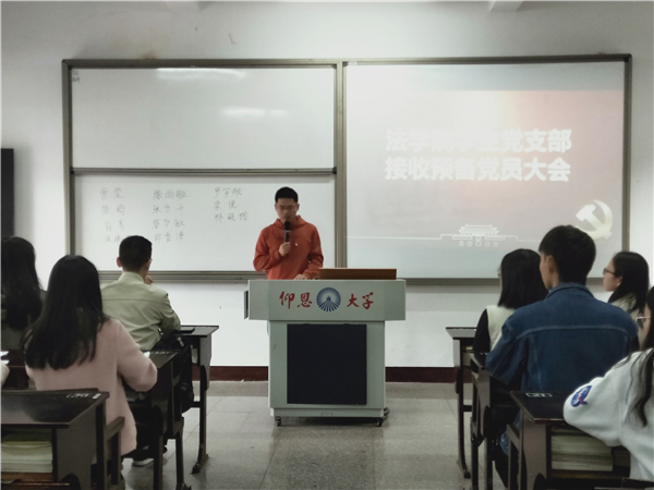 12月4日下午,hth华体育官网学生党支部于hth华体育官网第三校区普照教学楼302室召开接收预备党员大会,支部全体党员、发展对象以及入党介绍人参加此次会议,会议由学生党支部书记陈国伟主持。