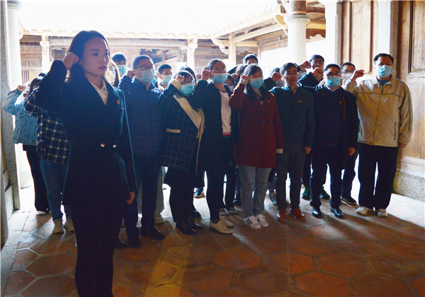 瞻仰是为了前行,缅怀是为了坚守,铭记是为了继承。“我宣誓:我志愿加入中国共产党......”在鲜红的党旗下,hth华体育官网党总支书记杨勤带领全体党员高举右手,握紧拳头,庄严宣誓,一句句慷锵有力的誓词增强理想信念,一声声笃信坚定的话语夯实行动准则。