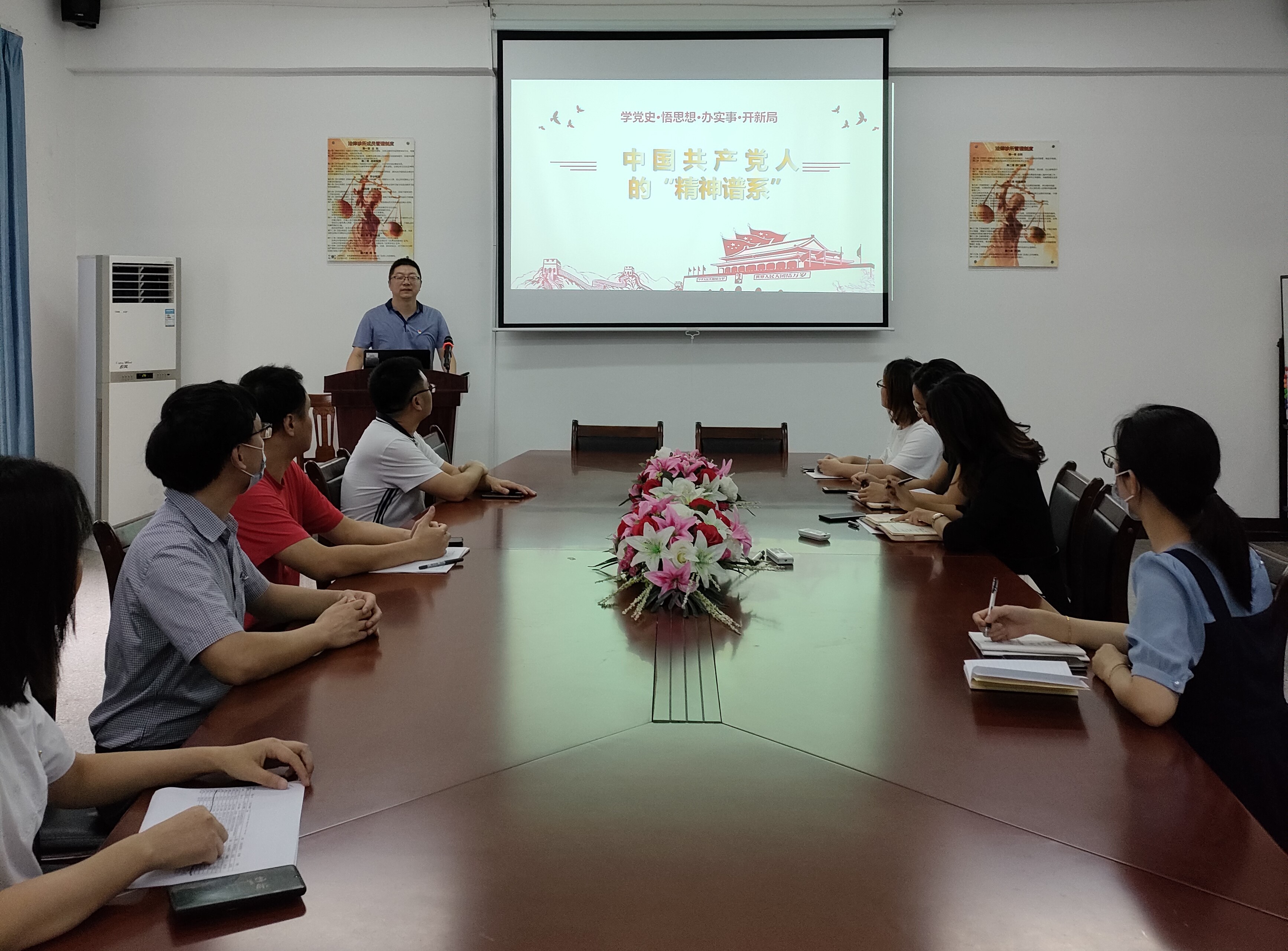 为落实党史学习教育,庆祝建党100周年。10月13日,在hth华体育官网第三校区普照教学楼法律诊所,hth华体育官网教工党支部开展“深入学习中国共产党人的精神谱系”主题活动,hth华体育官网全体党员教师参加了此次活动。
