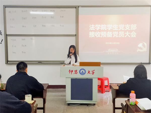 大会严格按照发展党员工作程序,由发展对象依次向党组织汇报对党的认识、入党动机等方面的情况。二十五位发展对象依次发言后,由入党介绍人及与会党员分别向大会报告发展对象有关情况,并对其能否入党表明了意见。经过与会党员的充分讨论和无记名投票表决,与会党员一致认为,魏文琪等二十五名发展对象已基本具备党员条件,同意接收魏文琪等二十五名同志为中共预备党员。
