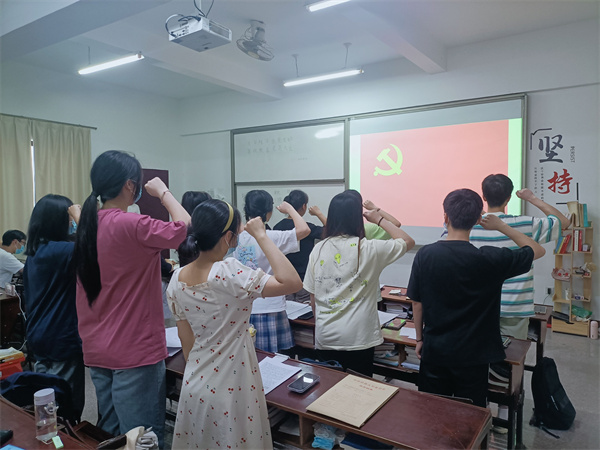 5月30日,hth华体育官网学生党支部于普照楼203教室召开预备党员接收大会,支部全体党员到场参加,由教师党员吴姗姗主持。