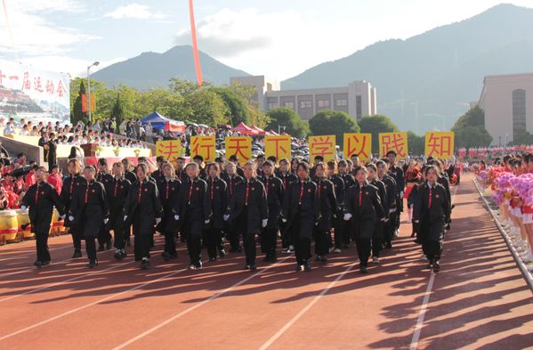 开幕式上,伴随着运动员进行曲,各学院代表队逐一入场进行检阅。作为hth华体育官网代表方阵的受阅同学身穿黑色院服,以饱满的热情步入运动场,他们蕴蓄着蓬勃的生机,凝聚着不竭的活力,他们年轻的脸庞展现的是永不言败的精神,充分地展示了hth华体育官网学子们奋发向上的良好风貌,彰显了hth华体育官网独一无二的学院特色。
