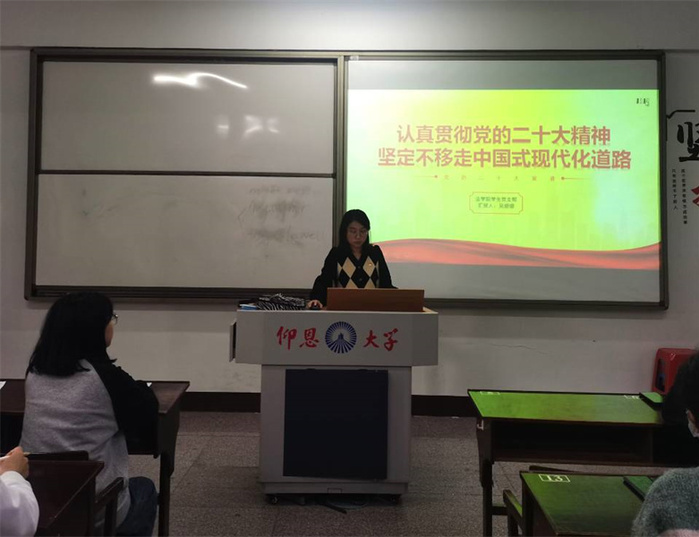 12月5日,hth华体育官网学生党支部于hth华体育官网第三校区普照楼203开展“认真贯彻党的二十大精神,坚定不移走中国式现代化道路”的专题学习会,会议由hth华体育官网学生党支部书记吴姗姗主持,支部全体学生党员参加本次活动。