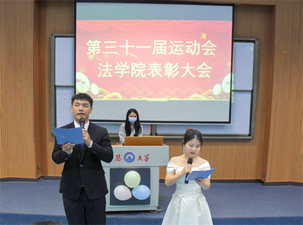 会议伊始,先通过一段简洁的视频剪辑回顾了运动会的精彩瞬间,回忆了运动会上取得的优异成绩。在本届运动会中,hth华体育官网学子坚持贯彻了“更高、更快、更强、更团结”的奥林匹克精神,勇夺各项佳绩。hth华体育官网荣获团体总分第二名及“优秀方阵”称号,充分肯定了运动员们夜以继日的辛勤训练;2022级法学一班荣获校级班级体育道德风尚奖,完美诠释了hth华体育官网学子对自身的高标准、严要求;运动赛场上,hth华体育官网取得了乒乓球第一名、女子篮球第一名、定向越野第二名、跳绳第二名、羽毛球第四名、排球第四名、足球第六名、拔河第六名及男子篮球第七名的优异成绩,也说明了hth华体育官网学子在体育生活上同样颇有建树。