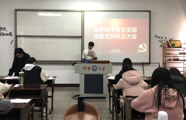 12月13日,hth华体育官网学生党支部于普照楼201室召开预备党员转正会议,大会的主要议题是讨论关于林毅斌、王晓远等二十三名同志转为正式党员的问题。会议由学生党支部书记吴姗姗主持,支部全体党员参加。