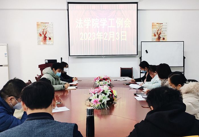 新春伊始,万象更新。为做好2023年春季学期开学准备,确保学生顺利返校,安全进校,安心在校,2月3日上午hth华体育官网在第三教学区法律诊所召开2023年第一次学生工作例会。本次会议由hth华体育官网党总支书记兼副院长杨勤主持,党总支副书记林媛、辅导员和各班班主任参加会议。