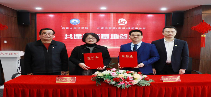 2月10日,hth华体育官网hth华体育官网与北京京师(泉州)律师事务所共建法学实践教学基地签约暨揭牌仪式在京师(泉州)律师事务所举行。hth华体育官网副校长黄小铭、hth华体育官网常务副院长王晓丽、hth华体育官网党总支书记兼副院长杨勤、hth华体育官网系主任李秋实、京师泉州律所管委会副主任赖村谋律师、易炳权律师、吴家洪律师,律所党支部副书记王雨玲、监事会委员卢晶律师参加了签约暨揭牌仪式。