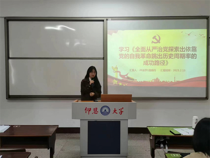 2月13日,hth华体育官网学生党支部于普照203教室,开展以学习《全面从严治党探索出依靠党的自我革命跳出历史周期率的成功路径》的专题学习会,会议由吴姗姗老师主持,支部全体学生党员参加此次活动。