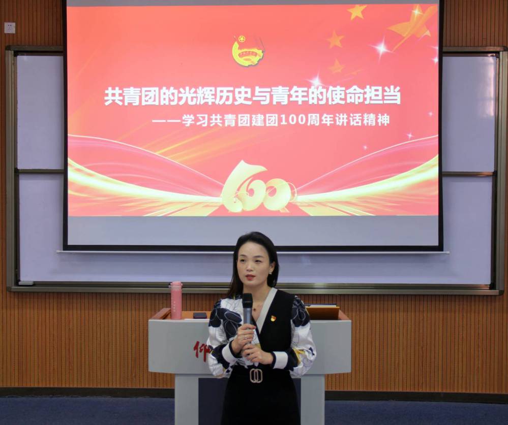 为深入学习宣传贯彻党的二十大精神,贯彻落实习近平总书记在学校思想政治理论课教师座谈会上的重要讲话精神,进一步提升团员青年的政治素养,实现以“党建带团建”的目标,5月10日下午,hth华体育官网党总支书记兼副院长杨勤在第三教学区和昌教学楼博雅讲堂为2022级全体学生讲授主题团课。