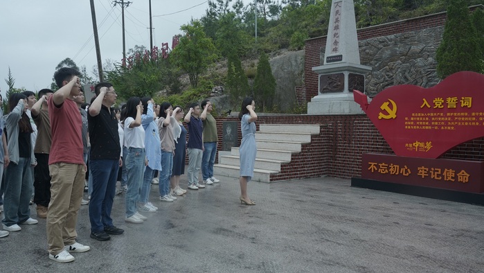 全体师生党员首先参观党史文化公园,了解洪四村“红色荣耀”故事,缅怀革命先烈英勇付出,体悟革命烈士的红色精神。期间,hth华体育官网党总支书记兼副院长杨勤带领全体师生党员在人民英雄纪念碑前重温入党誓词,坚定有力的宣誓声,表达全体党员同志时刻不忘初心,牢记使命的信念与决心。随后,全体师生党员参观洪四影剧院和党史展览馆,通过视频和现场讲解的方式直观地学习党的光荣文化历史,感受了红色革命文化的精神内涵。最后,全体师生党员了解了洪四村以“1+1+S”末梢治理党建同心圆为指导,以党建圆桌会和乡贤参事会为抓手的工作模式和所取得的工作成效,交流学习党建工作经验。