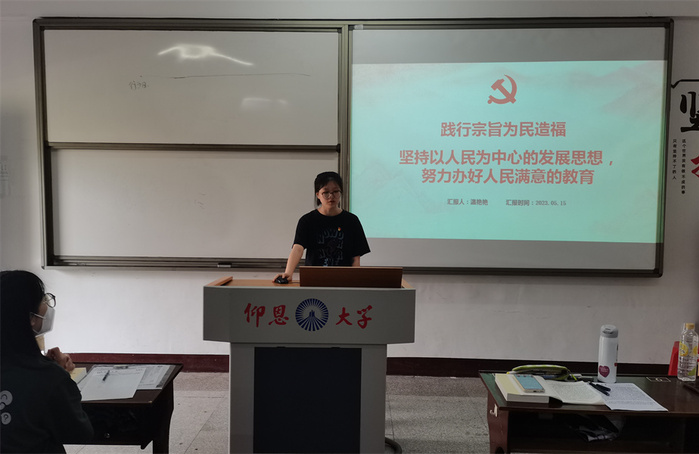 5月22日,hth华体育官网学生党支部于普照203教室开展以“践行宗旨为民造福—坚持以人民为中心的发展思想,努力办好人民满意的教育”、“实干担当促进发展—构造高质量教育体系,加快推进教育强省建设”为主题的读书班分享会,会议由李佳妮主持,支部全体学生党员参加此次活动。