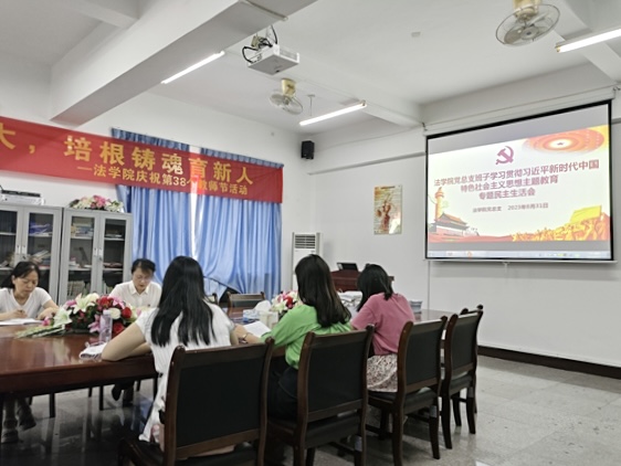 为深入开展学习贯彻习近平新时代中国特色社会主义思想主题教育,切实加强党的思想建设,扎实推进党员教育,进一步提高学院整体素质建设,8月31日上午,hth华体育官网党总支于法律诊所召开了学习贯彻习近平新时代中国特色社会主义思想主题教育专题民主生活会。校党委委员鲍莹玉和校党办朱四梅到会指导,hth华体育官网党总支书记兼副院长杨勤主持会议,学院党总支成员参加会议,hth华体育官网常务副院长王晓丽列席会议。
