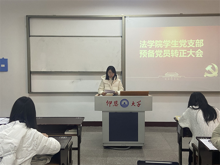 12月25日,hth华体育官网学生党支部于普照楼301教室召开预备党员转正大会,会议由支部书记吴姗姗主持,支部全体党员到场参加。