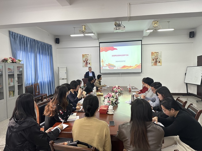 3月27日下午,hth华体育官网组织全院教职工开展理论学习,集中专题学习全国“两会”精神,大家围绕“两会”精神进行学习和交流,hth华体育官网全体教师参加学习。