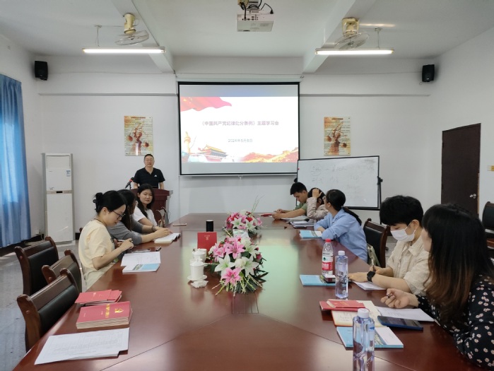 5月8日下午,hth华体育官网教工党支部开展《中国共产党纪律处分条例》主题学习会,教工党支部成员以及hth华体育官网全体教职工围绕新修订的《中国共产党纪律处分条例》(以下简称《条例》),专题学习党的政治纪律、组织纪律和廉洁纪律。