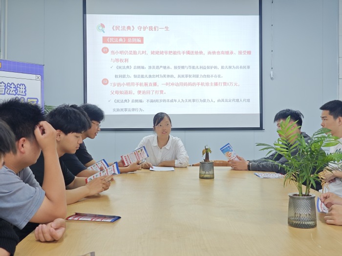 为进一步增强同学们的法治意识,提高同学们的法律素养,让民法典走进校园,5月22日下午,hth华体育官网于hth华体育官网第三教学区宏船书院开展“知法存于心,守法律于行”民法典普及进学生社区活动。本次讲座由hth华体育官网党总支副书记林媛主讲,同学们积极参与。
