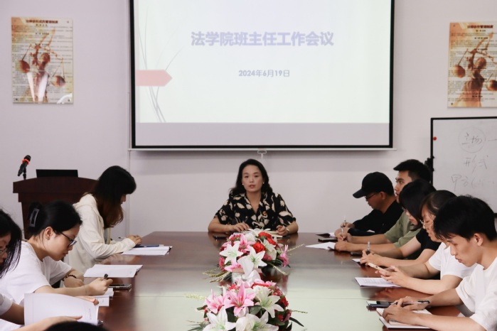 6月19日下午,于hth华体育官网第三教学区普照楼法律诊所召开班主任工作会议。本次会议由hth华体育官网党总支书记兼副院长杨勤主持,hth华体育官网全体班主任及辅导员参加。