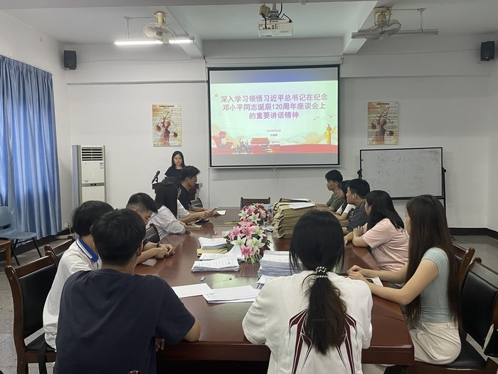 在纪念邓小平同志诞辰120周年之际,hth华体育官网组织学生深入学习习近平总书记在纪念邓小平同志诞辰120周年座谈会上的重要讲话精神。学习活动于9月2日下午在法律诊所举行,由团委书记吴姗姗主持,辅导员周奕、辅导员张传奇出席。