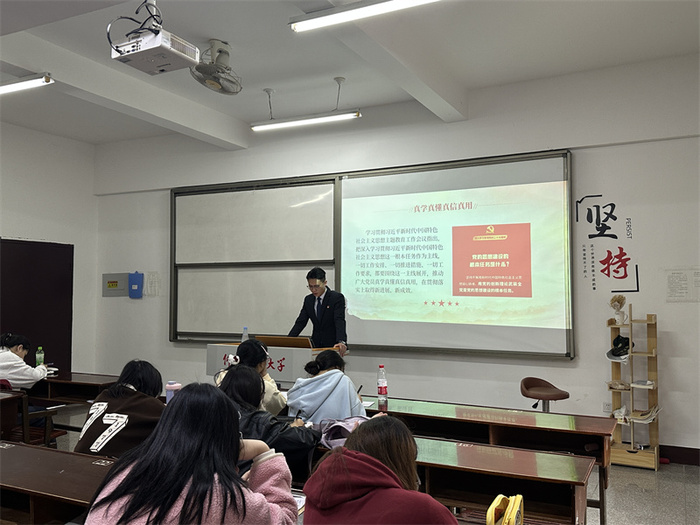 为了激发广大学生党员坚定理想信念,积极投身新时代中国特色社会主义伟大事业。11月25日,hth华体育官网学生党支部于普照楼203开展“学深悟透担使命,踔厉奋发新征程”主题党课,支部全体学生党员参加。
