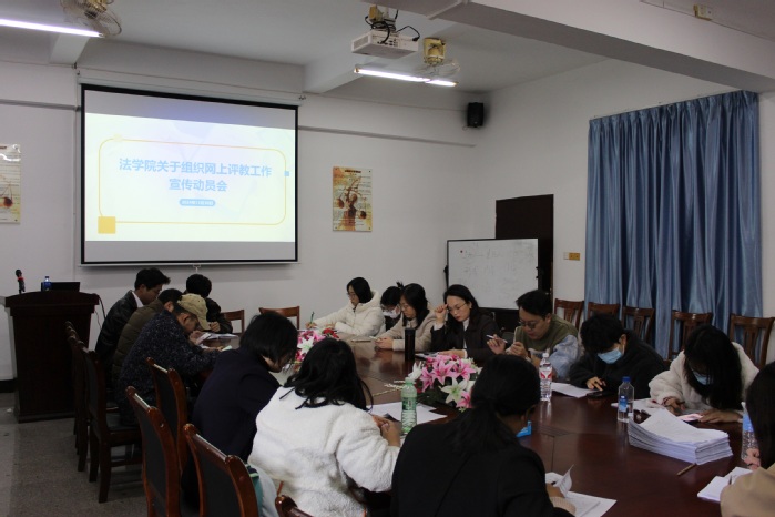 为进一步落实学校“以学生为中心”的教育理念,鼓励学生积极参与学校教学提升与管理,促进教师教学水平不断提高。12月30日,我院于hth华体育官网第三教学区法律诊所举办网上评教工作宣传动员会,全体教师出席参加。