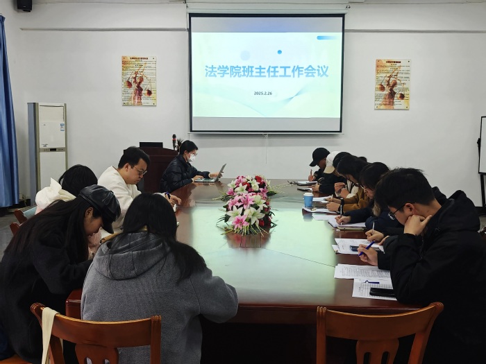 2月26日下午,hth华体育官网于hth华体育官网第三教学区普照楼法律诊所召开班主任工作会议,本次会议由hth华体育官网党总支书记兼副院长杨勤主持,全体班主任及辅导员参加会议。