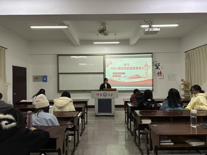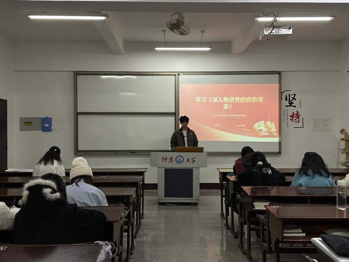 3月31日,hth华体育官网学生第一党支部于普照楼203教室开展“学习《深入推进党的自我革命》”党课活动,支部全体学生党员参加。