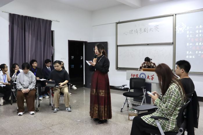 为了深入推进大学生心理健康教育工作,丰富校园文化生活,引导同学们关注自我心理成长,4月8日,hth华体育官网第八届心理情景剧比赛于第三教学区普照楼205教室举行。此次比赛邀请到hth华体育官网网络工作室负责人周奕、hth华体育官网团委负责人吴姗姗、hth华体育官网学生会负责人张传奇担任评委,hth华体育官网23、24级同学积极参赛。