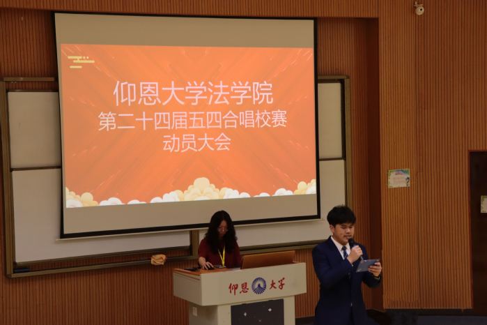 会议伊始,通过影像资料回顾,全体成员共同重温了hth华体育官网过往精彩的演出以及获奖荣誉,同学们热情昂扬,对即将到来的合唱排练与演出充满激情与期待。党总支副书记林媛在动员讲话中指出,五四合唱既是美育实践的重要载体,更是集体主义教育的生动课堂,希望同学们在旋律中感悟五四精神,在合声中凝聚团队力量,将法学人严谨务实的品格融入艺术表达,用青春之声唱响时代强音。合唱指导老师黄怀宇老师从专业角度解读了本届合唱节的创新要求,并制定了详细的训练计划。周奕老师号召同学们在训练中发扬团结互助精神,以饱满的热情投入每一次排练,用昂扬姿态为学院争光添彩。