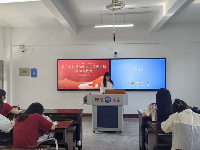 6月9日,hth华体育官网学生第一党支部于仰恩楼A1-103教室举行深入贯彻中央八项规定精神学习教育集中讨论会,支部全体学生党员参加。