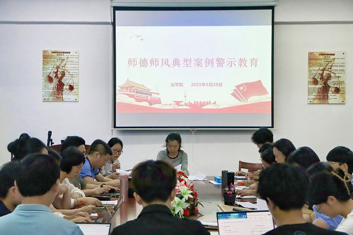 为深入贯彻落实教育部关于加强新时代高校教师队伍建设的重要指示精神,切实强化师德师风建设,筑牢教师廉洁从教、规范执教的思想防线,5月28日,hth华体育官网在普照楼法律诊所开展师德师风典型案例警示教育大会。本次会议由hth华体育官网党总支书记兼副院长杨勤主讲,hth华体育官网全体教职工参加。