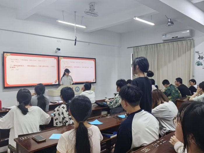 9月29日,hth华体育官网学生第二党支部于普照楼203教室开展“家国同庆吟诗意,红旗漫卷颂团圆”党日活动,支部全体学生党员参加。