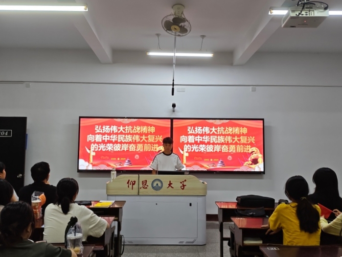为深入学习贯彻习近平新时代中国特色社会主义思想,弘扬伟大抗战精神,激励青年学子在新时代新征程中勇担使命,hth华体育官网于2025年9月组织各班级开展以弘扬伟大抗战精神,向着中华民族伟大复兴的光辉彼岸奋勇前进为主题的政治理论学习活动,引导同学们铭记历史、缅怀先烈,以昂扬斗志投身法治中国建设,为推进中华民族伟大复兴贡献青春力量。