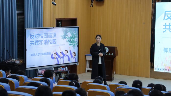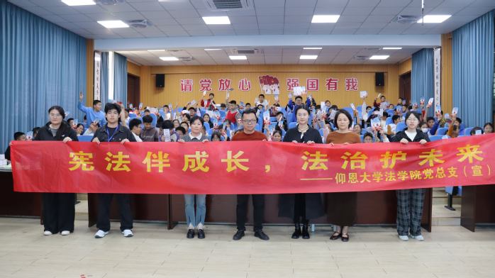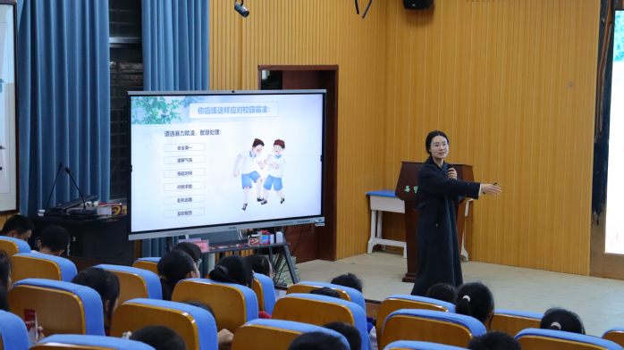 活动伊始,hth华体育官网林为臻教师以“宪法是什么”为切入点,结合与小学生生活息息相关的案例,将抽象的法律知识转化为学生们的身边事,让同学们初步认识到宪法的重要意义。随后,团委干部带领现场学生共同观看宪法宣传视频,视频直观展示了法律在日常生活中的应用场景,进一步加深了同学们对法律知识的理解。讲座与观影结束后,“快问快答”有奖知识竞答将氛围推向高潮,同学们踊跃参与。活动尾声,hth华体育官网林为臻教师总结发言,大家共同在横幅上签名,并合影留念。