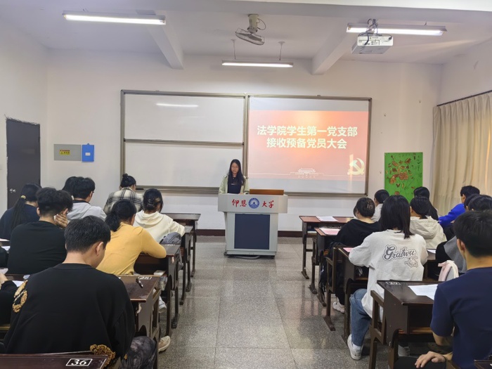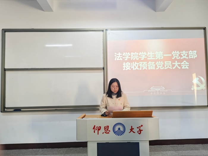 12月8日,hth华体育官网学生第一党支部于普照楼301教室召开预备党员接收大会,会议由支部书记吴姗姗主持,支部全体党员到场参加。